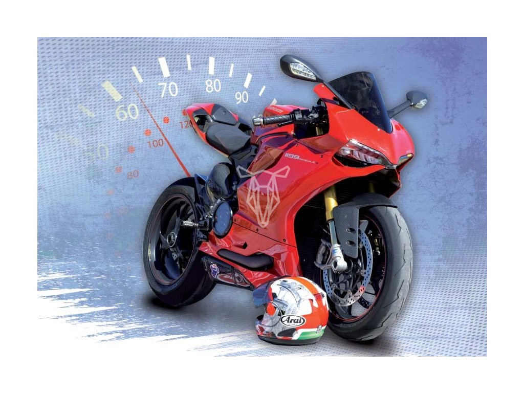Pohlednice Červená motorka s helmou na e-shopu Papírový tapír.Doplňkové parametry