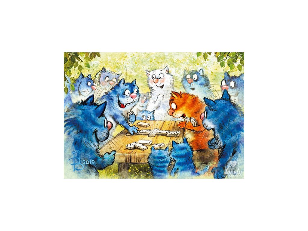 Pohlednice Modré kočky - Napínavé domino