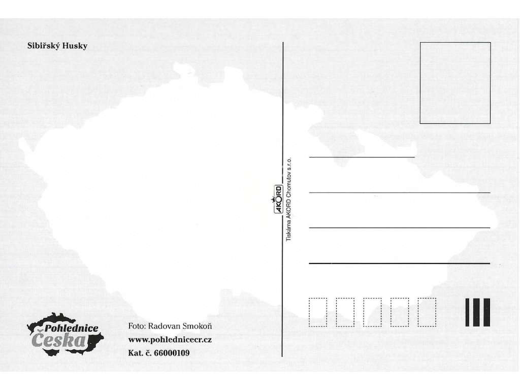 Pohlednice Pes husky na e-shopu Papírový tapír.Doplňkové parametry