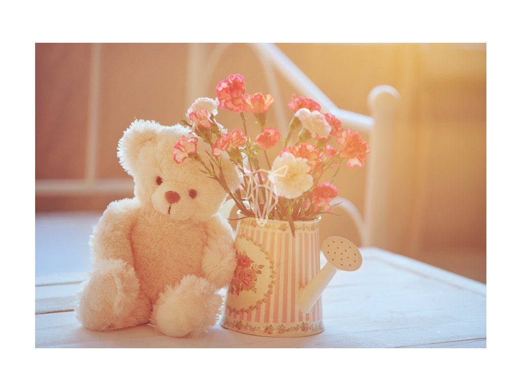 Pohlednice Plyšový méďa s květinami na e-shopu Papírový tapír.Doplňkové parametry