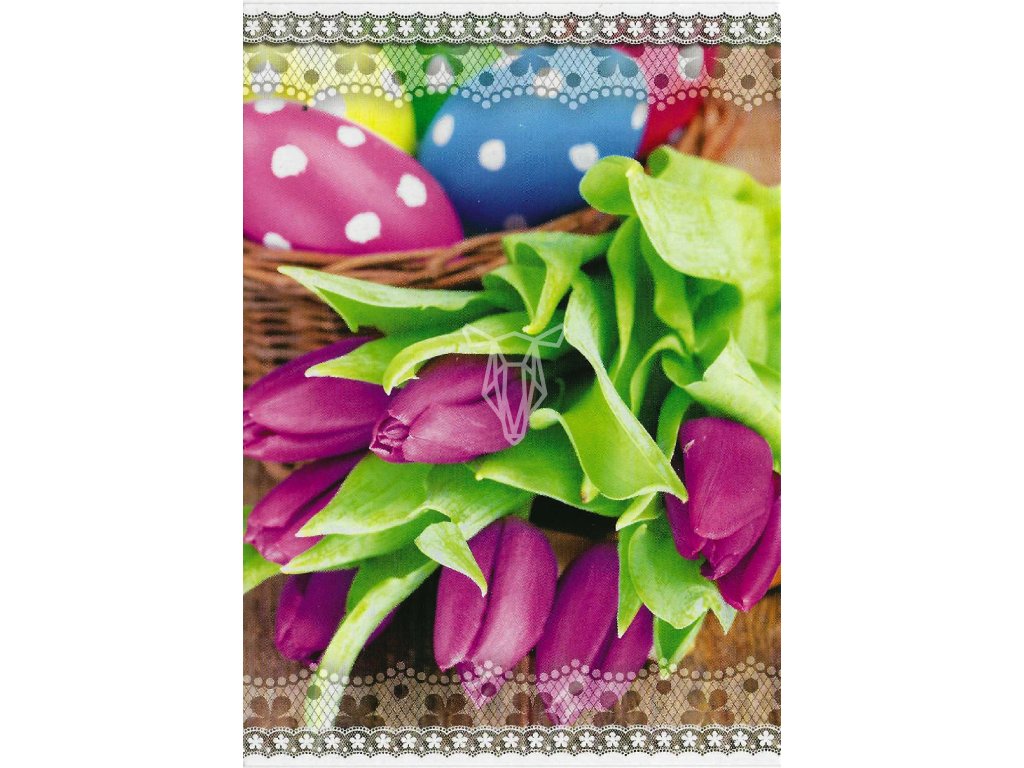 Pohlednice Puntíkaté kraslice s tulipány, s textem