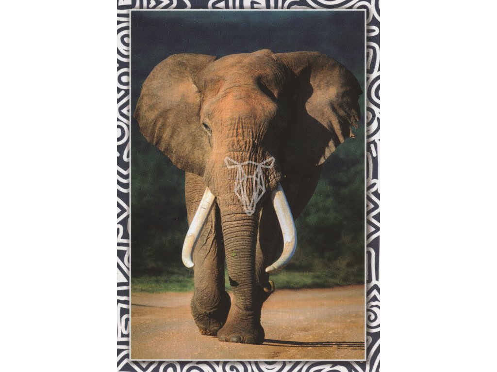 Dospělý slon africký na prašné cestě, v pozadí se žene bouře.