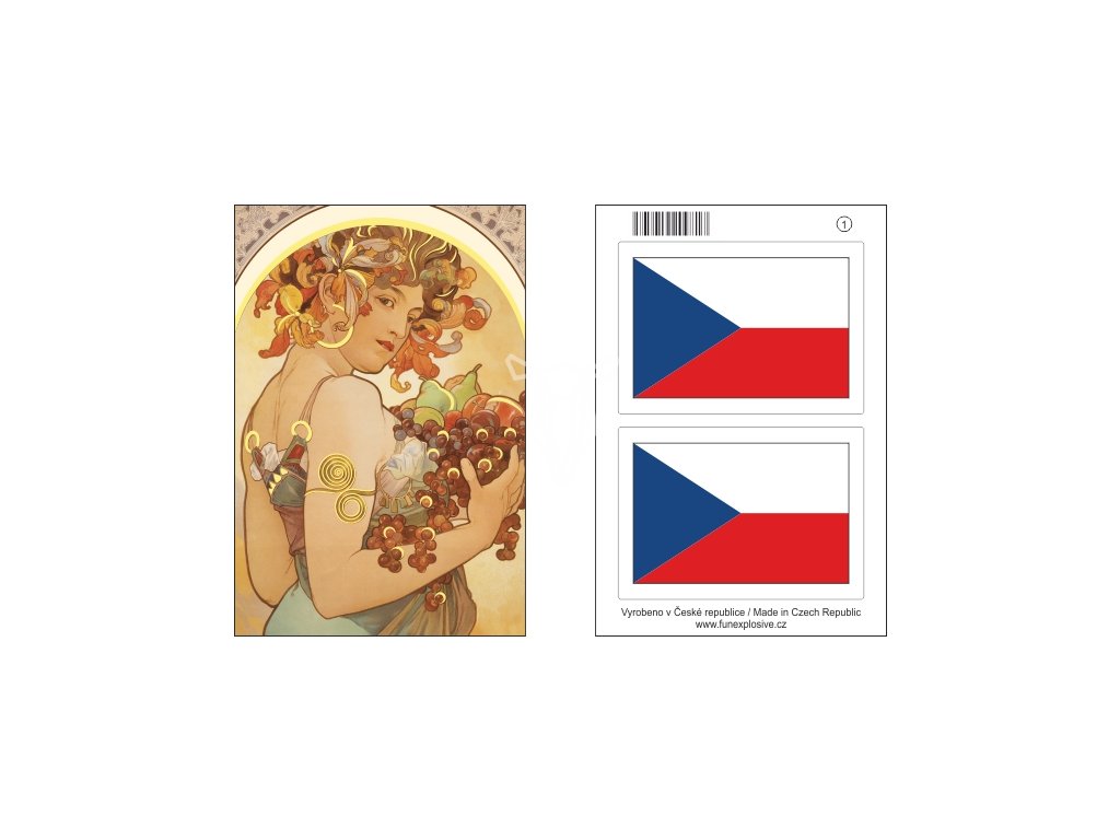 Velká samolepka má rozměr 9,7 cm x 6,5 cm. Na zadní straně jsou 2 menší samolepky.